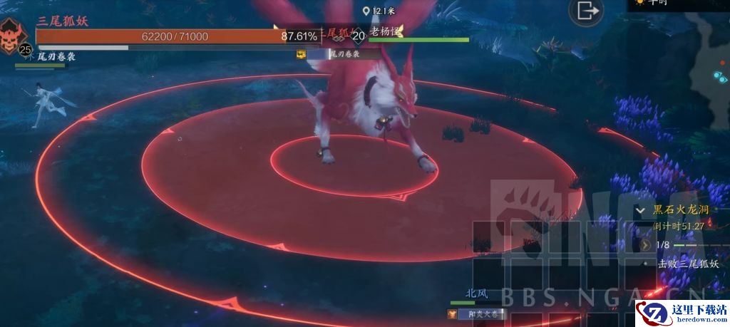技能2:尾刃卷袭,原地红圈,躲开即可