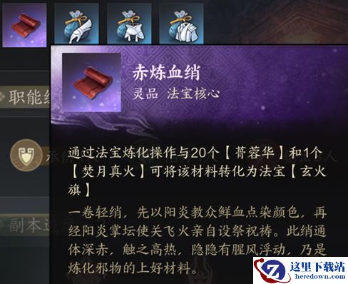 合成材料:赤炼血绡、20蓇蓉华、焚月真火