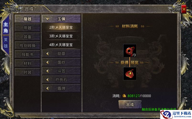 3、合成更高界别的玉佩面纱斗笠等装备类型