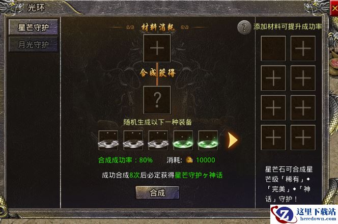 守护通过用星芒石或者月光石材料去灵光仙子(主城那边)来合成获得的,而合成阵法是有一定几率成功或者失败的,而通过星芒碎片或者月光碎片来加高成功的概率。