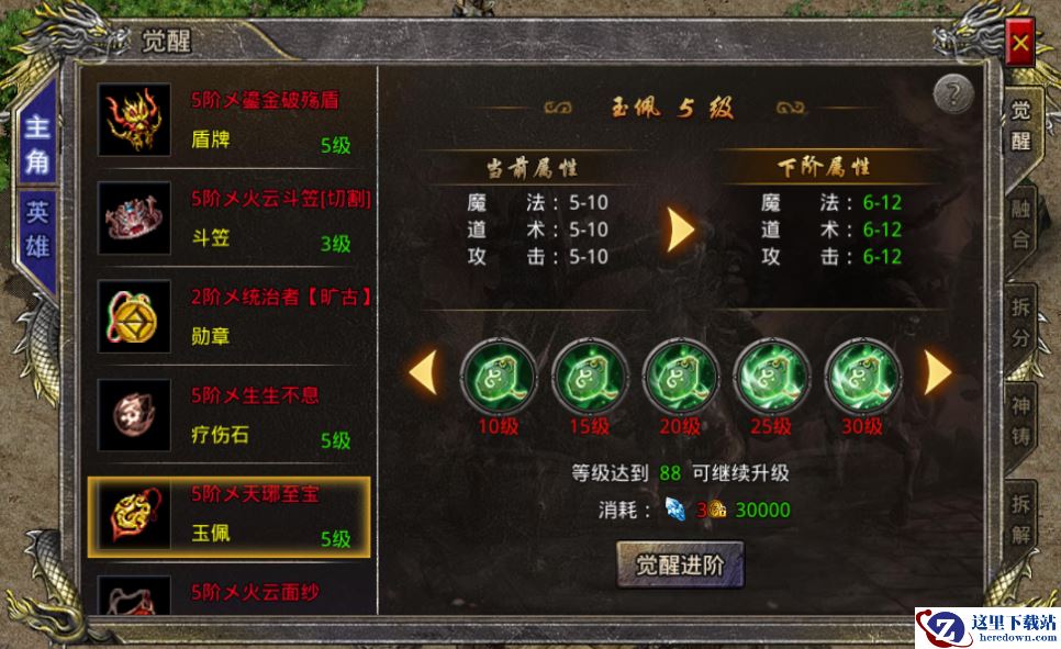 同样的,觉醒的等级越高,所需要的觉醒之石和传奇币也会越来越多;