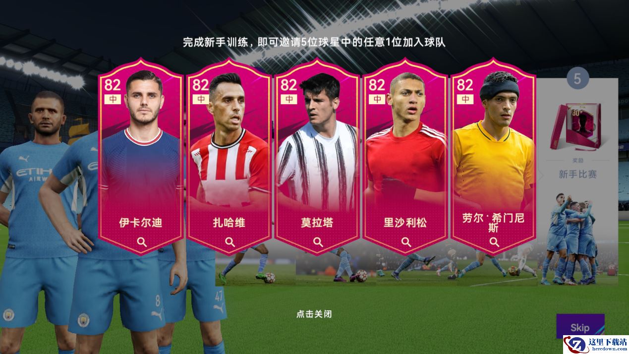 1.新手引导奖励-红卡82前锋5选一;