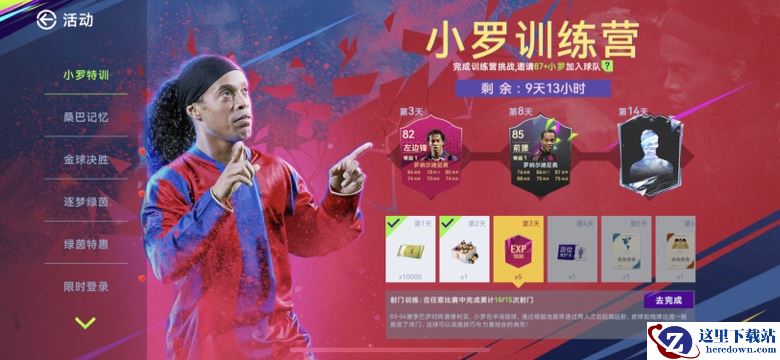 在小罗特训三天任务都完成后,点红卡小罗即可领取该球员,不过咱最终目的还是为了85的黑卡小罗还有万能突破黑卡