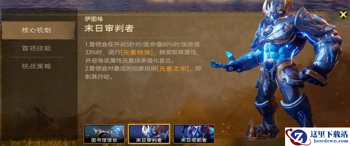 (精英难度)及时触碰和首领属性相同的元素球,被首领触碰则会为其大幅增益。若玩家触碰到和首领不同属性的元素球将产生极大的负面效果。