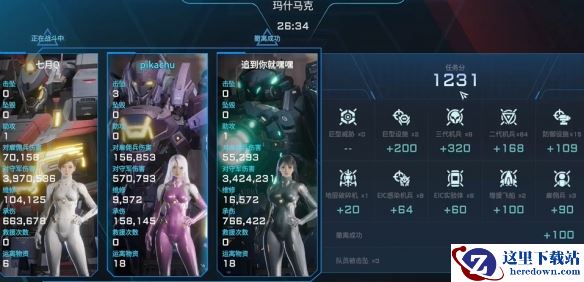 在结算页面,玩家可以看到总的任务分,包括击败的 NPC 数量等。