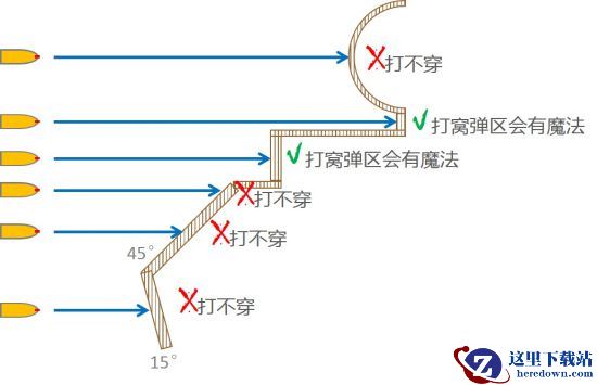 新手指引:窝弹区:装甲剖面图呈“⊃”形的地方,这个“⊃”的底下一横很容易被后效炸穿。