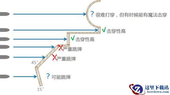 AP弹食用指南:能不用AP就不用AP,AP弹的穿深其实标得与实际不符的,实际穿深大概只有标的70%;但是你真那么不好运地用美系、英系,车子只装备了AP弹,那就找小块的垂直装甲打容易打穿;倾斜装甲别打,跳弹很高,弧形装甲突出部位、机枪口位置有概率打穿,不作为首选。