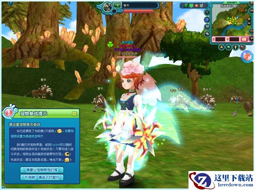 然后系统会提示是否让宠物帮忙打怪,确定后则自动激活了,可以带着宠物去打怪升级了。