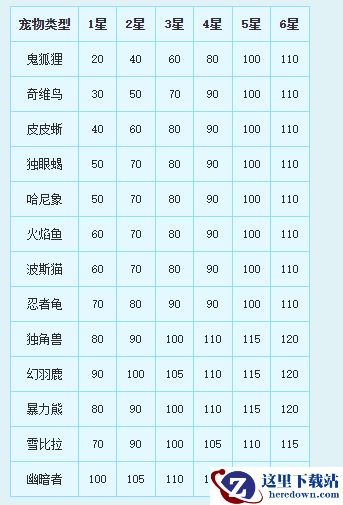 注:暴力兔、金刚狼、翼耳狐、鸿光虎、七彩鹿、闪电须、红心皇后等变异宠是不可以升星的,携带等级都需要80级哦~