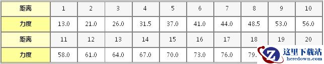 力度根据上面表格,对应距离对应力度。