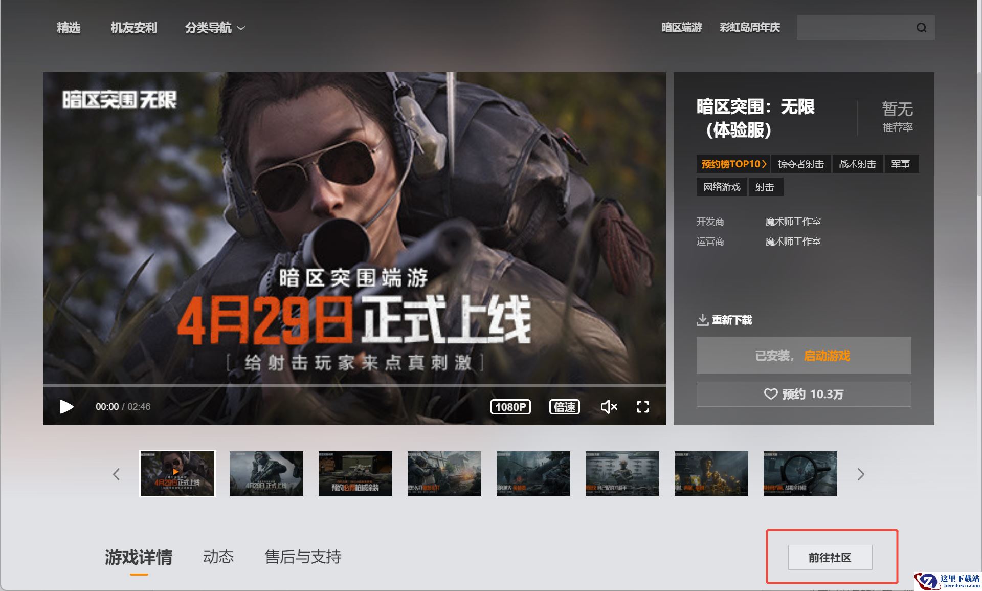 2.在《暗区突围:无限(体验服)》社区页面中,点击【下载】进行客户端安装