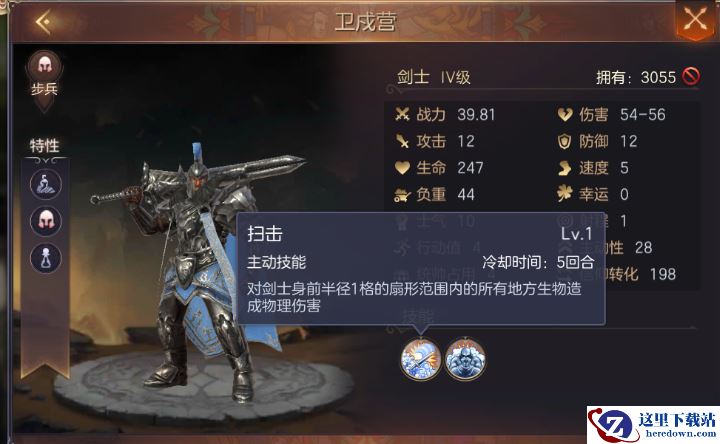 剑士,圣堂高阶近战兵种。主动技能横扫,可以对身前半径一个的敌对生物造成高额的伤害,缺点就是手短腿短,不过可以用来弥补天使与牧师阵容没有近战单位的劣势。