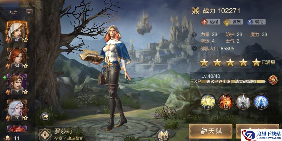 罗莉莎,首充礼包与VIP礼包获取的英雄,该英雄可以说是非常的全面。主动技能圣光之触,可以复活死亡单位并且进行治疗。如果配合上圣堂的天使与牧师兵种,能使整个队伍的生存能力大幅提高,并且被动技能也能全面的提升部队生存与输出能力。