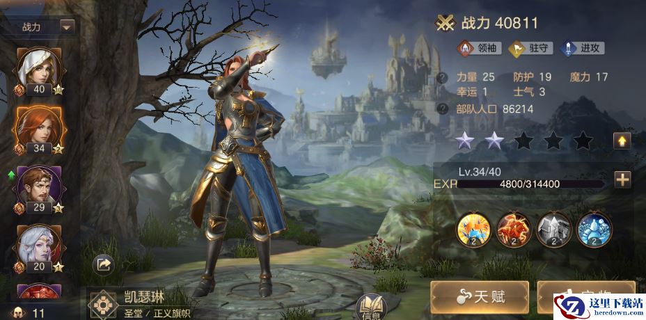 凯瑟琳,V9礼包获取的英雄,算是土豪专属。该英雄因为获取难度问题所以技能非常强,主动技能激励,最高级可以提升全体部队百分之40是伤害。并且被动也是全面的队全兵种进行属性提升。