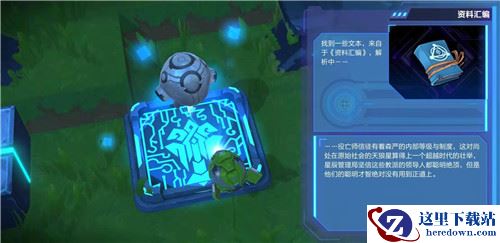 4、搬着箱子进入遗迹后,大家就可中间位置发现遗失的机器人,使用随身智能进行调查就可获得一份资料汇编。