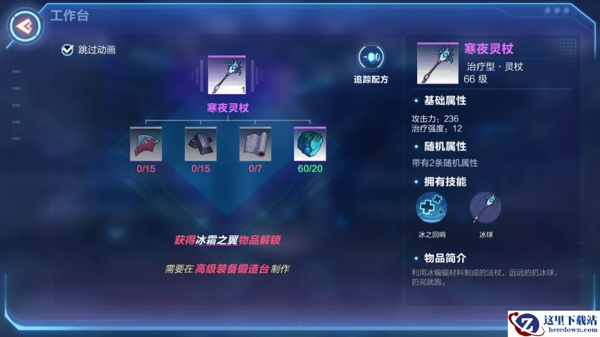 材料:冰霜之翼15 铁锭15 寒霜镀层7 史诗级冰蓝陨铁20