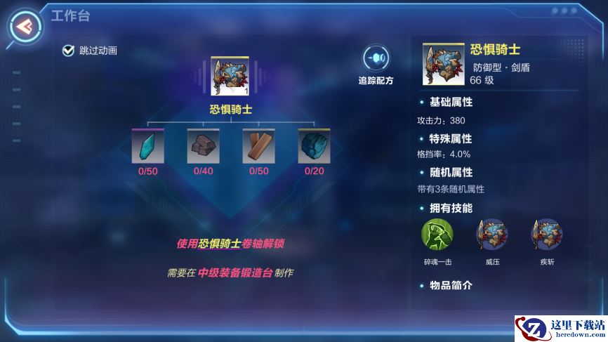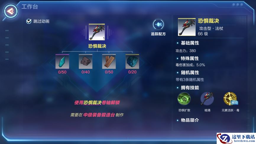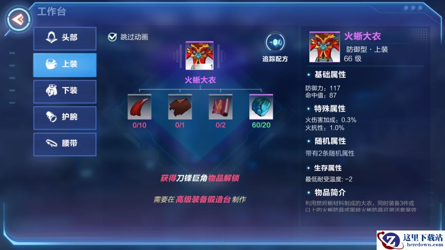 材料:刀锋巨角50 革制内衬5 烈焰镀层10 史诗级赤红陨铁100