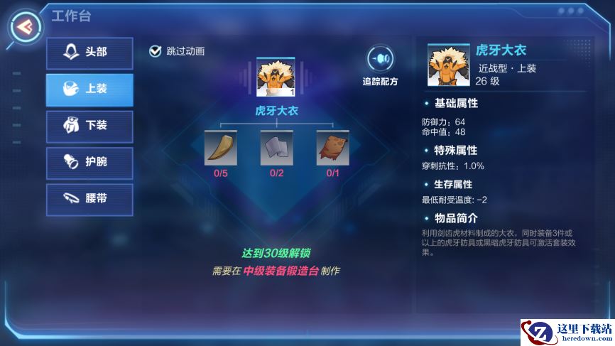 套装属性:饱食和水分消耗降低30%,暴击提升12%,攻击造成20%减速3秒,造成暴击时目标重伤5秒。