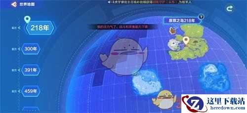 3、之后点击右上角的世界地图,选中左侧的想要回去的年份的原罪之岛。