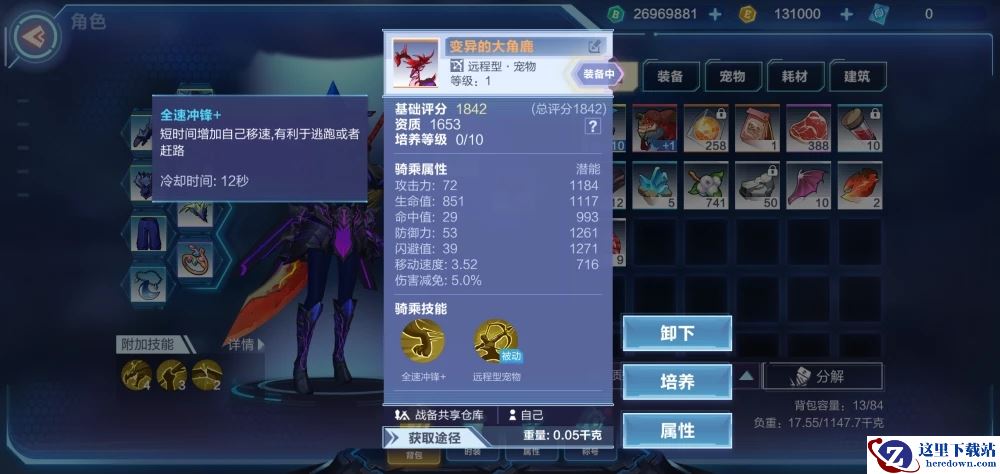 变异大角鹿属于平民神宠,刷新潜能只需要2个苹果