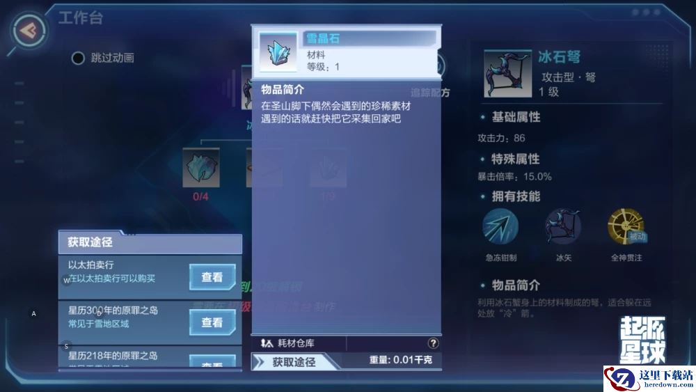 特别提示:制作装备需要大量的雪晶石,所以玩家可以多囤一些。