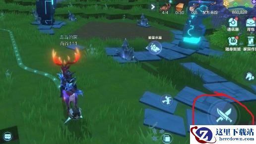 1、进入游戏后,玩家查看画面右下角双剑按钮。会触发隐藏的菜单栏。