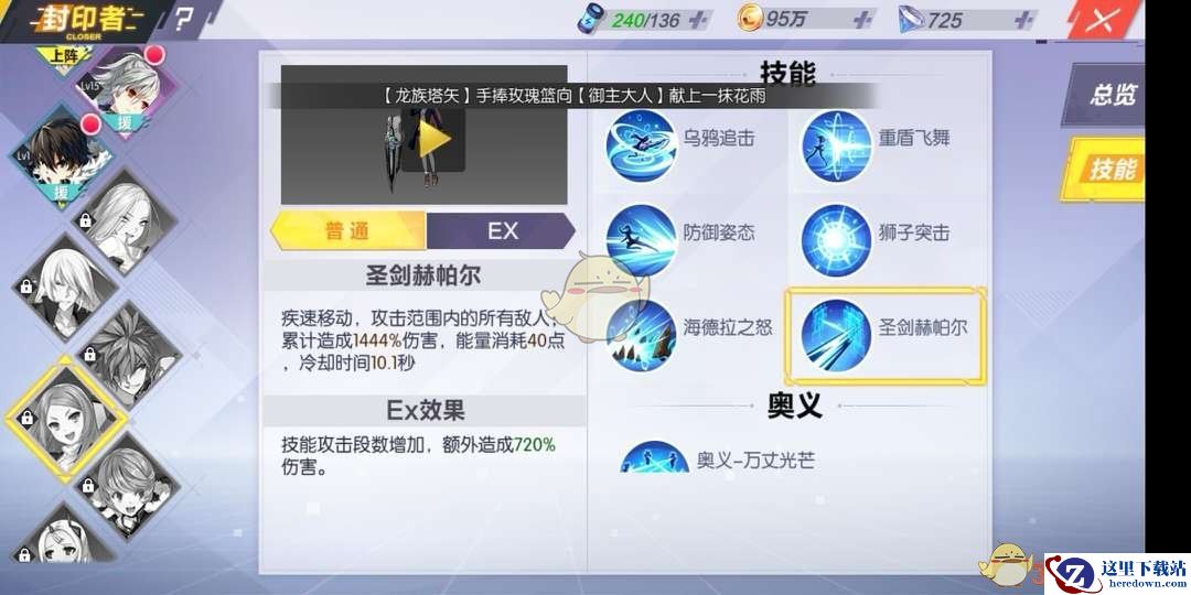 技能放放顺序:乌鸦追击→狮子突击→圣剑赫帕尔→重盾飞舞