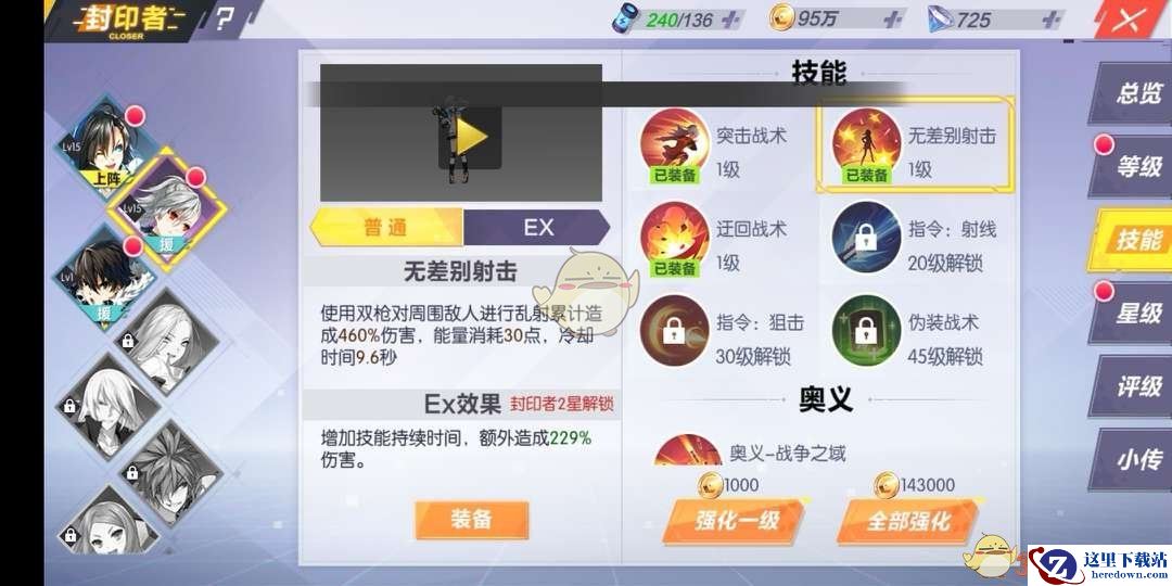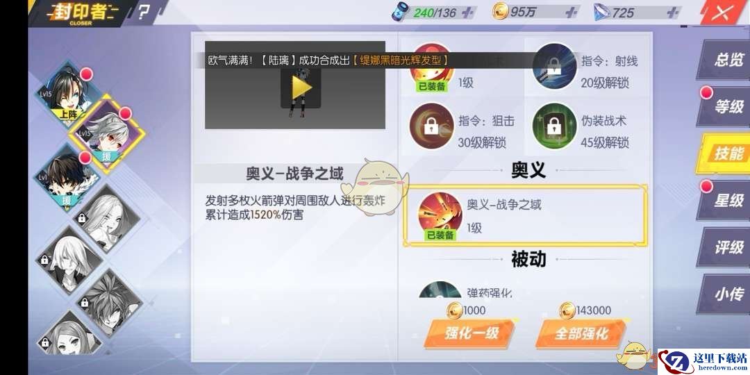 奥义-战争之域:发射多枚火箭弹对周围敌人进行轰炸累计造成1500%伤害。