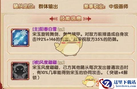 宋玉的主动技能来说192%+146的伤害,并无视35%的防御属性。