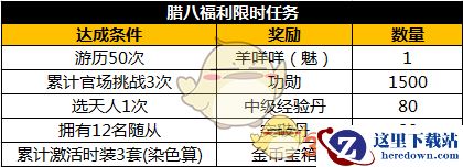 【活动内容】:活动期间,完成腊八限时任务的小主即可领取超值福利奖励,千万不要错过哦!