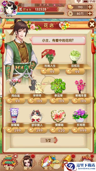 小主们除了可在游历系统中获得鲜花外,还可前往花店使用元宝购买。