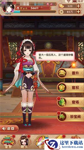 达到官品从7后,小主们会正式参与后宫的争斗中,官权,官场,珍宝阁这3个功能,会对玩家开启。