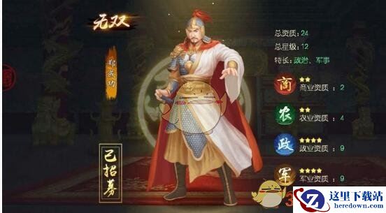 科举同一批的大臣品质都是一样的,但是特长不同,可以根据自己当时的国力分布情况,选择最适时自己的大臣,例如政治高的,看到农业大臣不要放过。而喜欢军事的,爱打架的,就选择武将吧。橙色的是无双,这种紫色的是卓越,蓝色的是优秀。