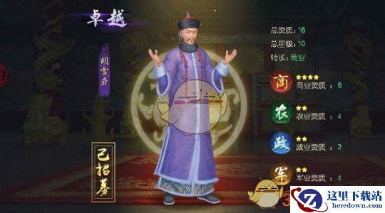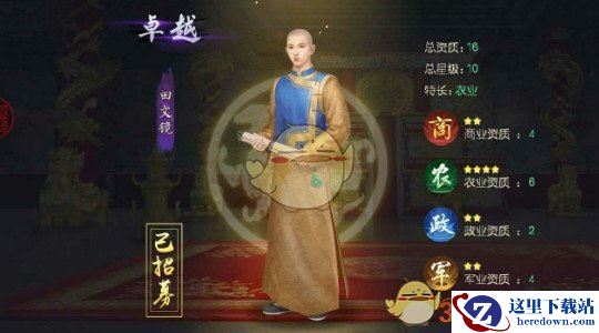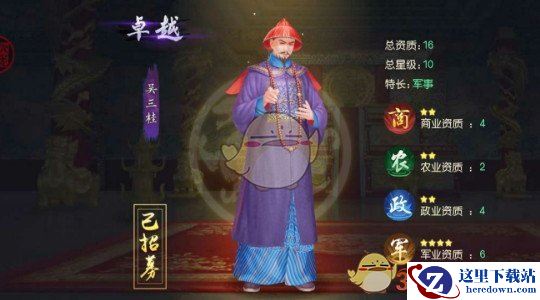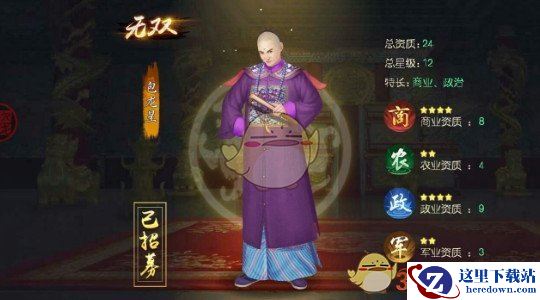 每个大臣也都会对自己有一段介绍,通过这些介绍就可以大致分析出他们的特长了。同品质的总资质点数是一样的,所以大家完全不用担心在三个里面选了差的问题,只要选择自己目前需要的就好。