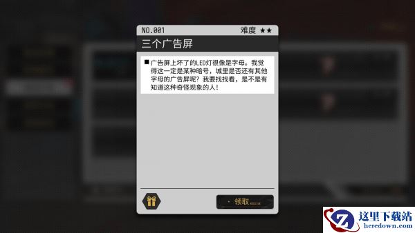 三个广告牌的异闻也难倒了很多玩家,其实特别简单,首先找到三个广告牌,记录其中的字母,可以截屏看字母