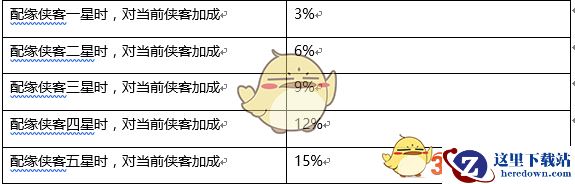 侠客情缘星数未点亮时,造成5%的额外伤害。当情缘开始点亮后,攻防血内缘分中,每开启一个配缘星数,伤害额外追加0.5%。