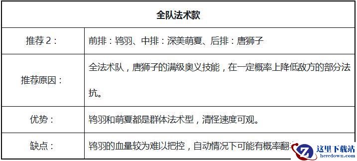 整体分析:根据各类技能描述,可以大概估算唐狮子主堆属性:暴击、攻速,副堆属性:生命、攻击。同时在高物防低法防的副本中,拥有一定活跃度,但是奥义的攻击范围较小,建议瞄准时机施放,避免空大。
