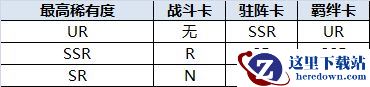 目前最高的稀有度为UR,往下依次为SSR、SR、R以及N卡,出最高稀有度为UR的武士外,其余武士皆有三种不同作用及稀有度的卡牌,玩家在获得武士任意一张卡时,便可解锁相应图鉴及上阵出战,但若想要进行更多的操作,则需获得更高稀有度的卡。