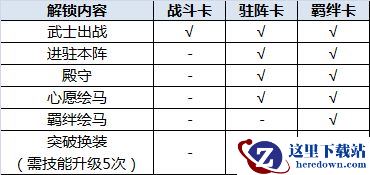 下面这张便是不同稀有度的卡所能解锁的相关操作: