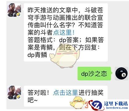 题目:昨天推送的文章中,斗破苍穹手游与动画推出的联合宣传曲叫什么名字?