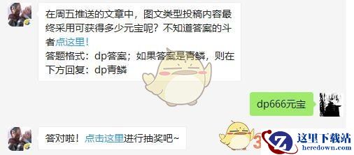 斗破苍穹手游4月22日微信每日一题是:在周五推送的文章中,图文类型投稿内容最终采用可获得多少元宝呢?这一题的答案是什么呢?不知道的小伙伴,一起看看下面小编给大家带来的斗破苍穹手游4月22日微信每日一题答案吧。