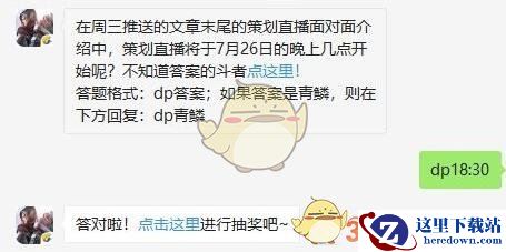 斗破苍穹手游2019年7月26日微信每日一题是:上在周三推送的文章末尾的策划直播面对面介绍中,策划直播将于7月26日的晚上几点开始呢?这一题的答案是什么呢?不知道的小伙伴,一起看看下面小编给大家带来的斗破苍穹手游7月26日微信每日一题答案吧。