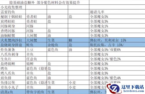 注意:料理成功的概率和材料以及品质有关,材料放置正确但是品质很低的成功率只有5%。
