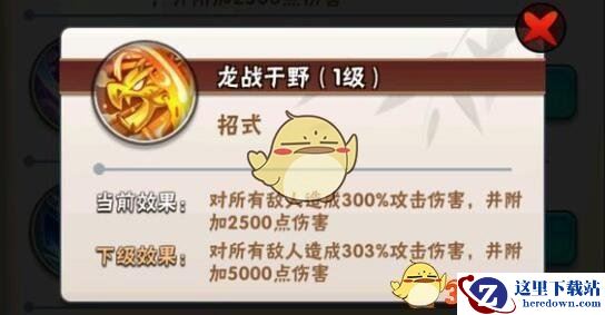 效果:全图300%攻击伤害并附加2500点伤害 ↑增加3%伤害和2500点伤害/级