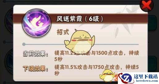 效果:提高10%攻击和250点攻击(5秒) ↑增加0.25攻击和250点攻击/级