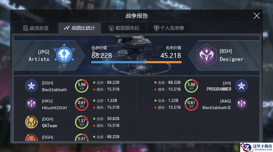 战争报告是对正在发生和已经结束的战争进行追踪和数据汇总的功能,在战争报告中玩家可以查看包括战争所在的星系、开始时间、结束时间、对阵军团列表、对阵双方投入、击杀、损失等明细数据,及所有在战争中活跃玩家的排行榜: