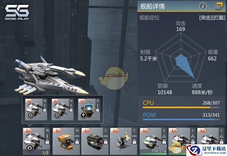 在装置的选择上,为了能够在减速敌舰的同时死死咬住它,所以首选自然是小型推进装置和航行干扰装置,接着为了保证自己的生存,再加装1个小型护盾修理装置来修复自己受损的护盾。