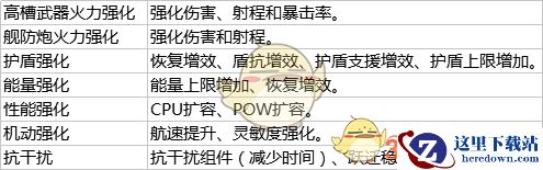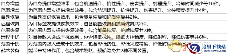 组件只要装配上舰船后就能产生属性效果的加成,目前版本里组件有7类:
