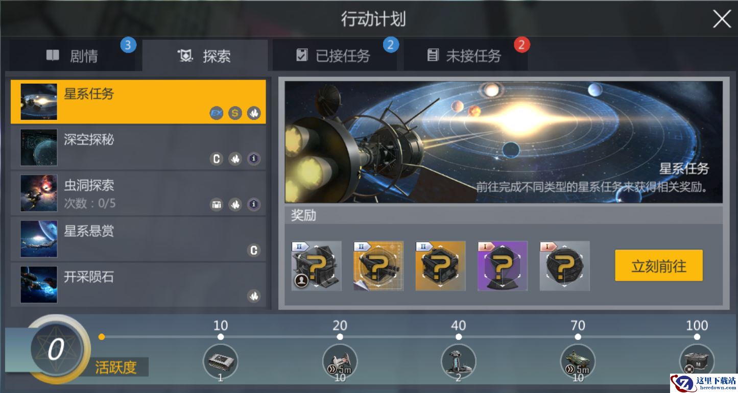 探索活动为每日刷新;星系任务为计时刷新。每日完成会获得大量的经验、道具及资源奖励,是前期升级的重要途径。