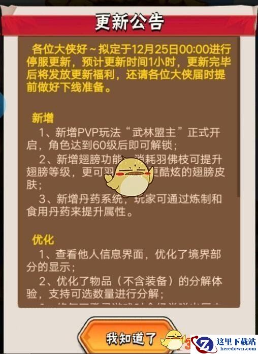 《暴走大侠》手游预计12月25日将进行更新,此前对于这次的更新,不仅时间经过更改,连更新内容也更改过,现在不清楚是否为最终版,下面手游网小编就给大家带来了2019.12.25日《暴走大侠》更新内容,大家可以提前了解一下新内容!